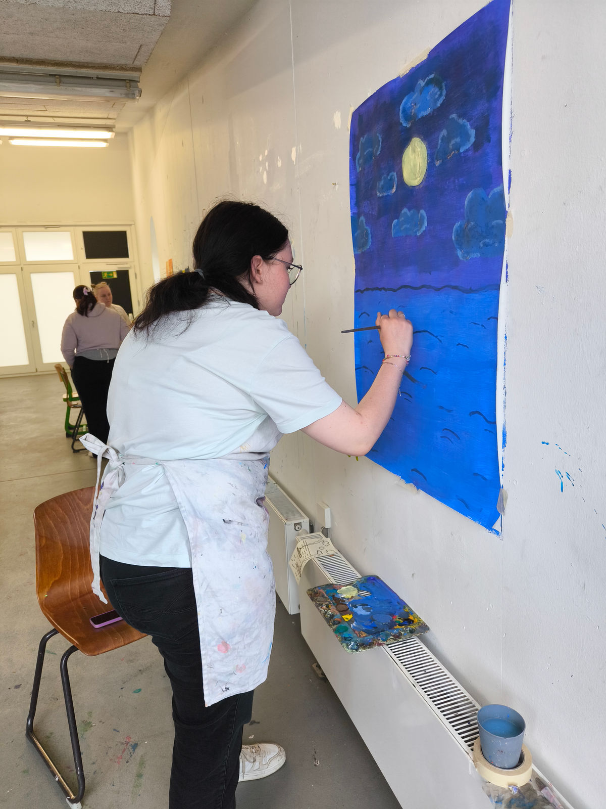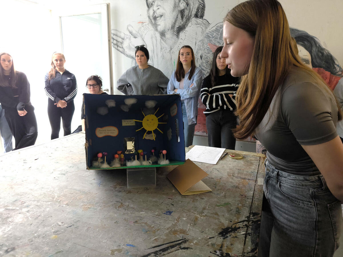 In den folgenden Tagen ging es an die künstlerische Illustration der geschriebenen Texte. Hierfür standen vier Werkstätten zur Auswahl. Diese wurden von Künstlerinnen und Künstlern der Kreativwerkstatt angeleitet. Am Freitag gab es eine große Präsentation mit den Ergebnissen. Hier folgt nun ein Blick in die einzelnen Werkstätten: