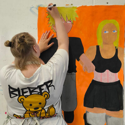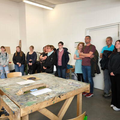 Präsentation in der 3. Werkstatt: Malerei/Grafik unter Anleitung von Sven Großkreutz - Maler und Grafiker aus Halle