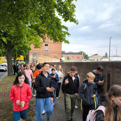 Dann ging es auf Exkursion - in Richtung Osten, genau in jene Himmelsrichtung, in welcher unser Nachbarland Polen geografisch gelegen ist. Die Entdeckungstour führte in dieser Woche einmal zur Landespolizeischule und zum anderen zum städtischen Friedhof. Die Gruppe, welche zur Landespolizeischule wanderte, wurde von Mtarbeitern der Einrichtung in Empfang genommen und in einem kleinen Vortrag mit der Polizeischule vertraut gemacht. Einige Jungs konnten sich in sportlichen Übungen für angehende Polizisten auf der Laufbahn ausprobieren.