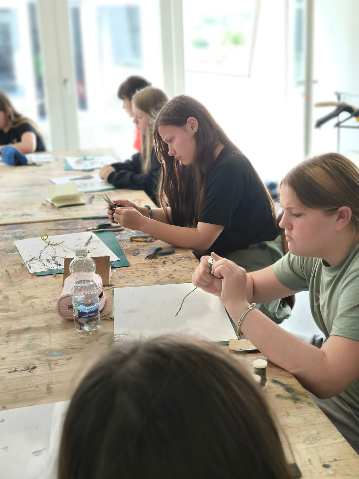 In den folgenden Tagen ging es an die künstlerische Illustration der geschriebenen Texte. Hierfür standen acht Werkstätten zur Auswahl. Diese wurden von Künstlerinnen und Künstlern der Kreativwerkstatt angeleitet. Hier folgt nun ein Blick in die einzelnen Werkstätten: